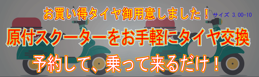 ただいま 『原付タイヤ交換』がお得!!
